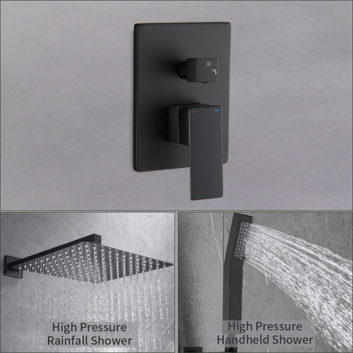 The 12" rain head delivers a spa-like rainfall that fully covers your body, while the air-in technology creates a soft, massage-like feel. The wall-mounted design and ultra-thin profile save space and add a sleek, premium aesthetic to modern bathrooms. With the included hand-held and square rainfall heads, you can switch between a broad, immersive rinse and targeted cleansing, even under lower water pressure.